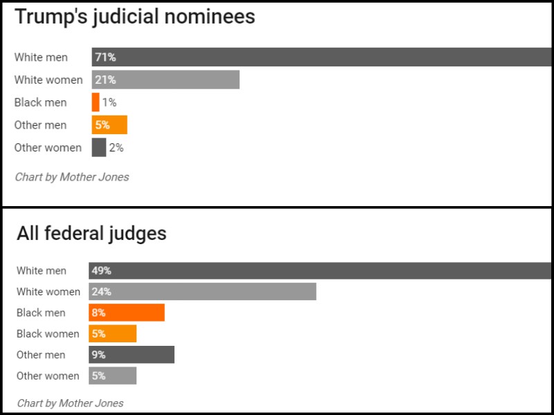 ¹Mother Jones: These Charts Show, How White, Male and Conservative Trump’s Judicial Nominees Have Been, Kate Harlow March 2018